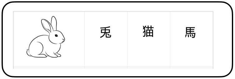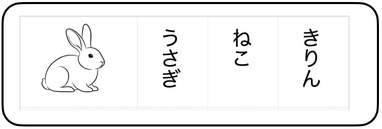 選択 選択 2025.08.29 選択課題は、選択肢の数、選択肢の類似度により難易度が変化します。 絵に対応する仮名の選択 動物 3つの選択肢から選ぶ 1ページ5問 絵に対応する漢字の選択 動物 似ている漢字があるので注意して選びましょう 1ページ5問 絵に関する質問 2択 絵についての質問に2択で答えます 1ページ5問 反対語の選択 反対語を選択肢から選びます 1ページ10問 随時更新してきます。