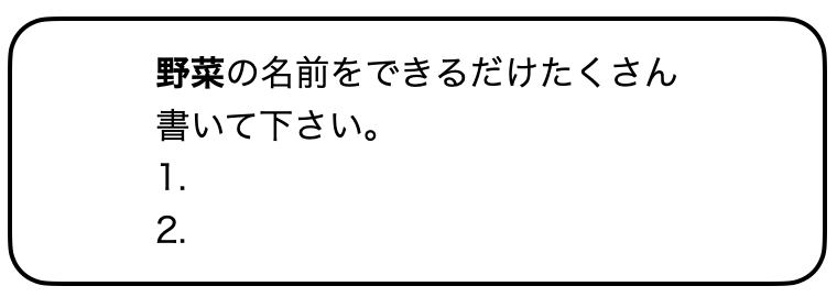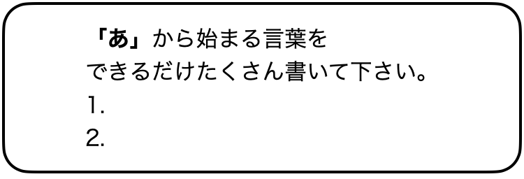 脳内にあるたくさんの言葉から特定の言葉を引き出す練習です。